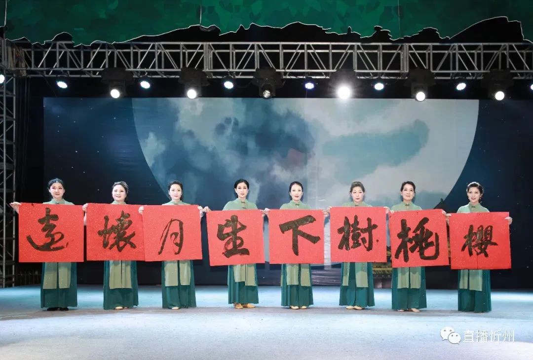 八位書(shū)法大家周如璧、張啟明、白崇厚、王利民、任俊威、王福生、殷渭靈、崔如玉,現(xiàn)場(chǎng)書(shū)寫(xiě)的“櫻桃樹(shù)下望月懷遠(yuǎn)”,既是晚會(huì)主題的表達(dá),更是對(duì)傳統(tǒng)文化書(shū)法的一種敬仰;