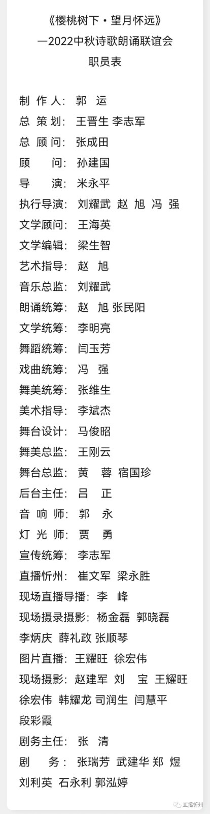 《直播忻州米永平、李志軍訊)9月8日晚,一場(chǎng)別開(kāi)生面的“櫻桃樹(shù)下·望月懷遠(yuǎn)”中秋詩(shī)歌朗誦聯(lián)誼會(huì),在“櫻桃樹(shù)下自在農(nóng)莊”草坪廣場(chǎng)隆重舉行,這是忻州市首家“企業(yè)搭臺(tái),自媒體唱戲“舉辦的活動(dòng)。忻州市政協(xié)副主席王海英親自撰寫(xiě)的《櫻桃樹(shù)下·望月懷遠(yuǎn)》拉開(kāi)了本次晚會(huì)的序幕
